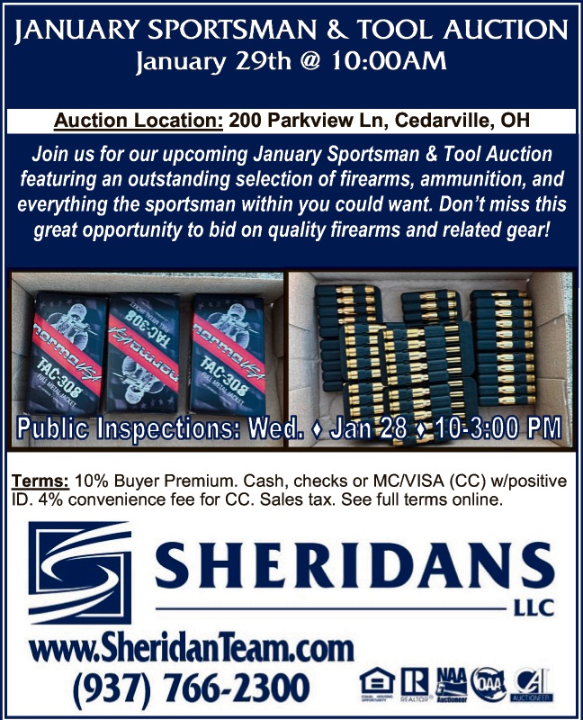 LARGE AUCTION Sunday, Jan. 18th 10:00AM Germantown, OH 101 Triangle Ct. SR 725 & 4 to behind McDonalds. Highlights