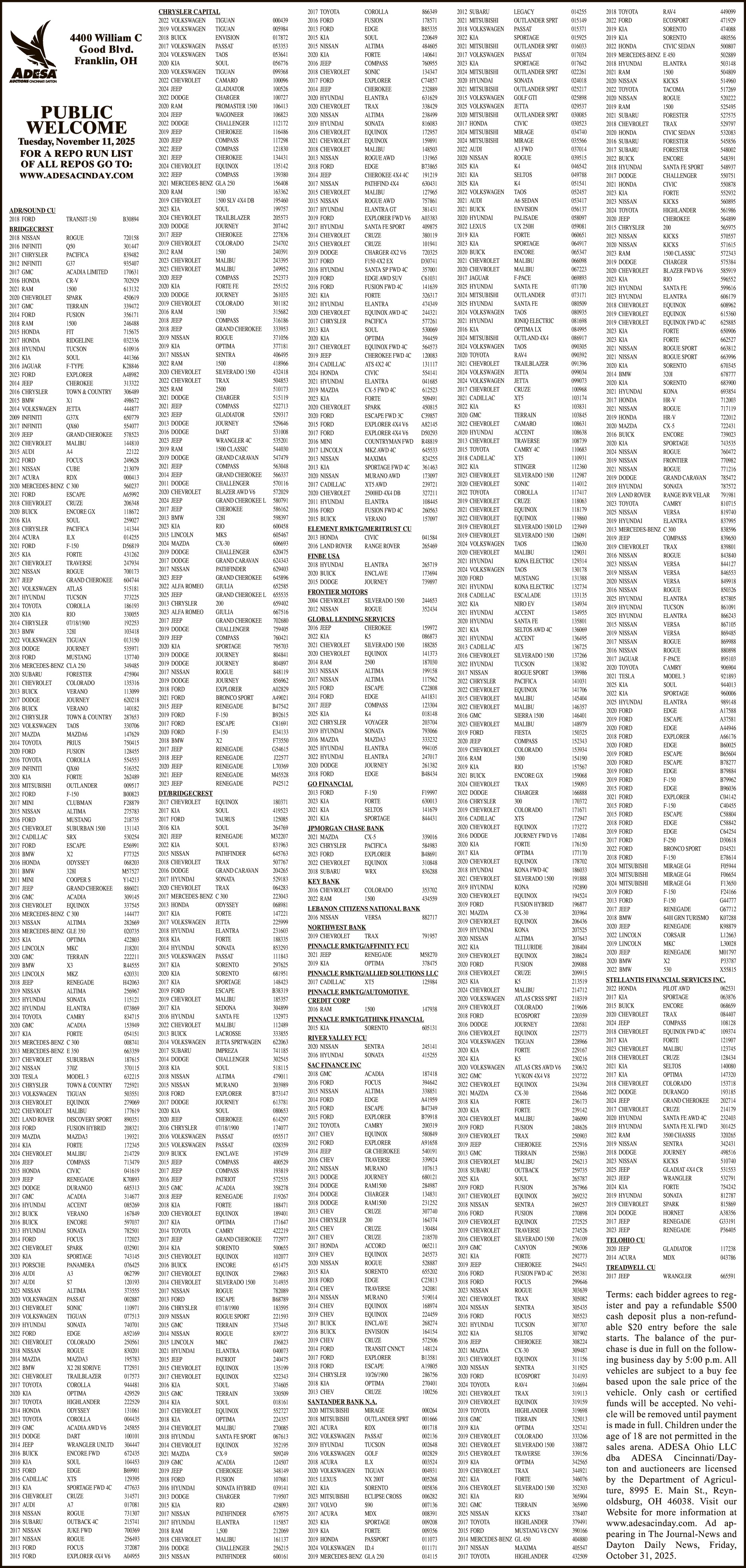 Legal Notice - ADESA NOVEMBER 11 SALE