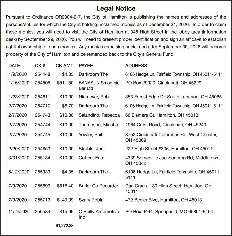 Legal Notice No.1200-39 NOTICE TO PROPERTY OWNERS OF SPECIAL ASSESSMENT On September 24, 2025, the Dayton City Commission,