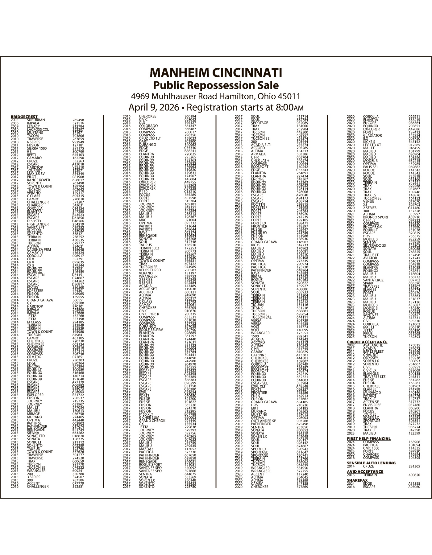 Legal Notice - MANHEIM AUCTION 4-9-2026