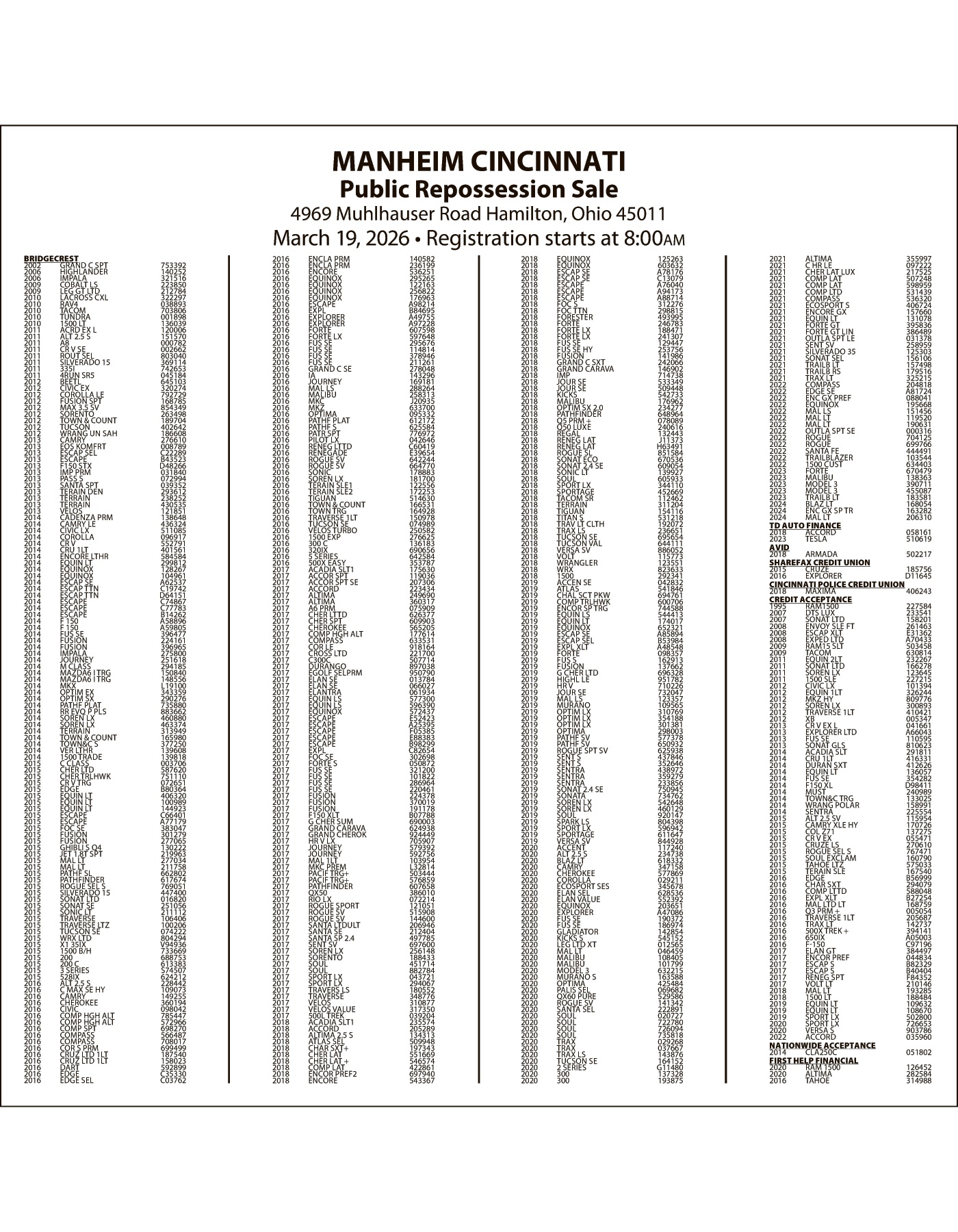 Legal Notice - MANHEIM MARCH 19 SALE
