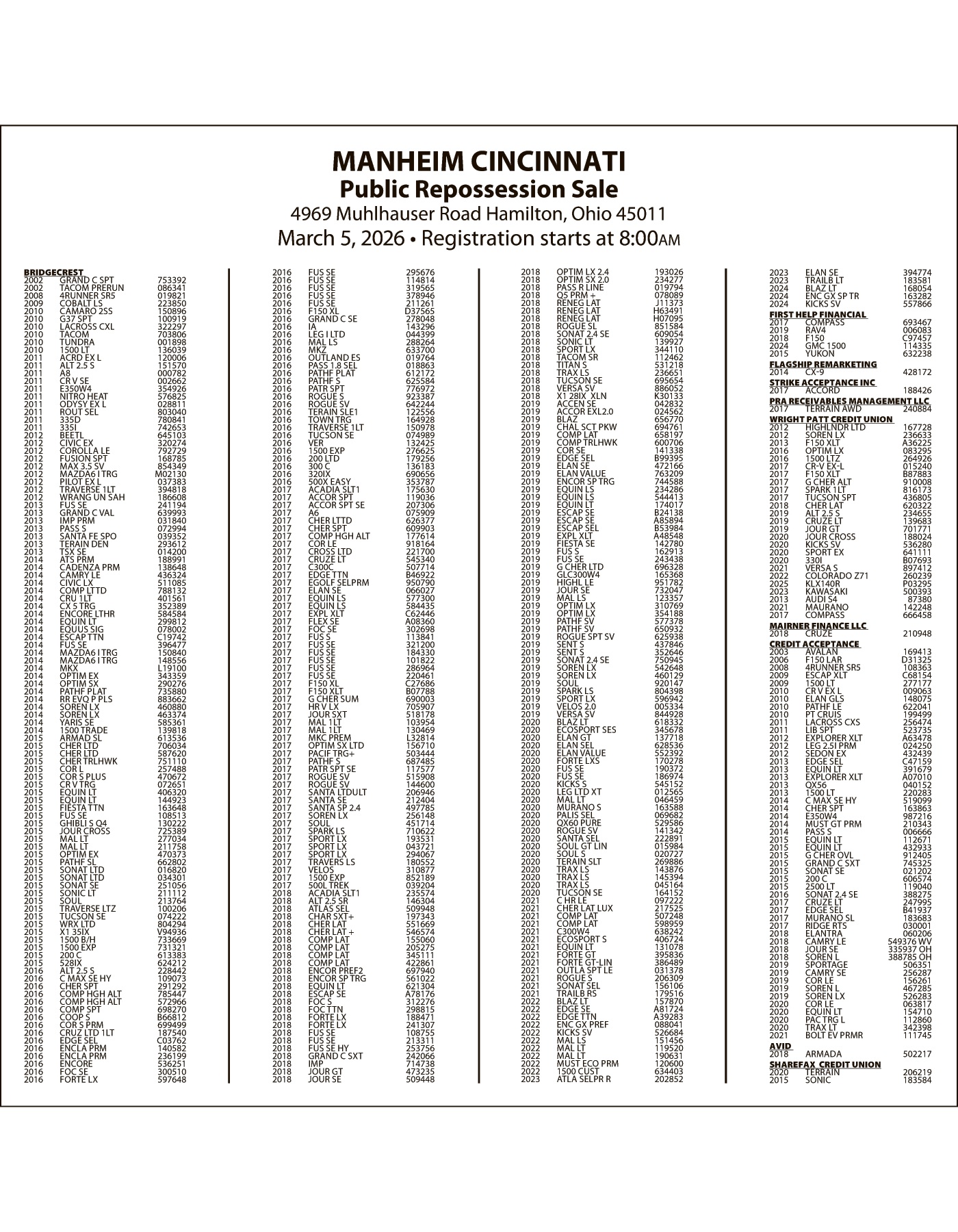 MANHEIM MARCH 5 SALE